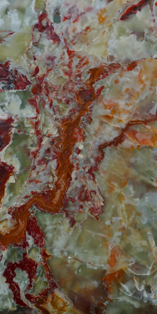 Our Botox Onyx features bold, natural patterns and rich color variations, making it a standout choice for those seeking unique, one-of-a-kind memorials. This stone is not commonly available—only through our direct mining operations you get access to get it made into a headstone.